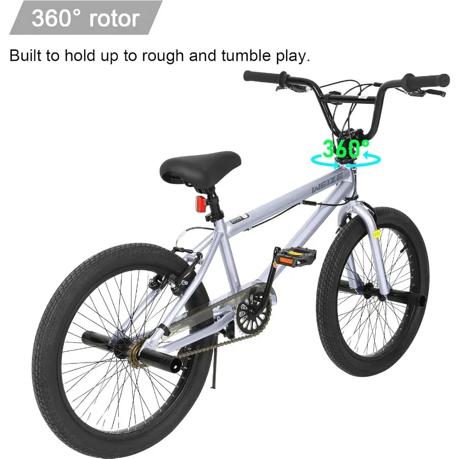 20 inch Freestyle BMX Bike for and Adults Men Women Hi-Ten Steel Frame 360 Degree Rotor Freestyle 4 Pegs Single Speed Teen Bike