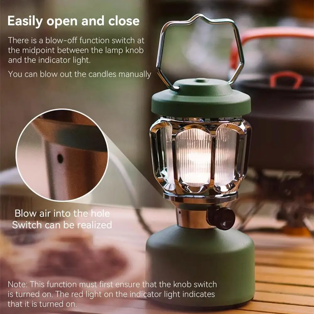 3.Effortless Ignition: Effortlessly open and close the lantern by twisting the knob; Blow out function changes it from bright to dim with ease. The red light indicates that it's on, while blowing out extinguishes the candle.