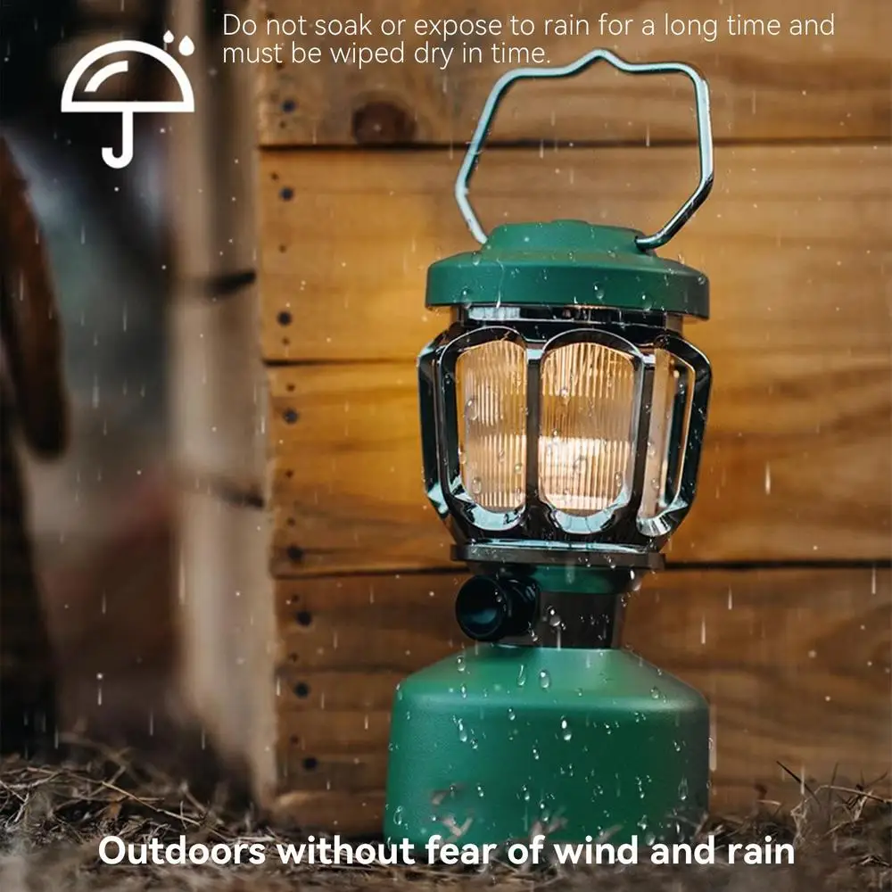 1.Outdoor Weatherproof: Illuminate the night with our rechargeable camping lantern boasting a versatile 1/4 screw port to attach to most outdoor brackets for reliable weatherproof lighting. Don't forget to wipe it dry to avoid damage from prolonged soaking.